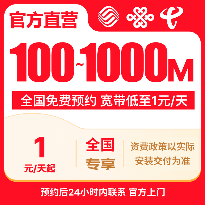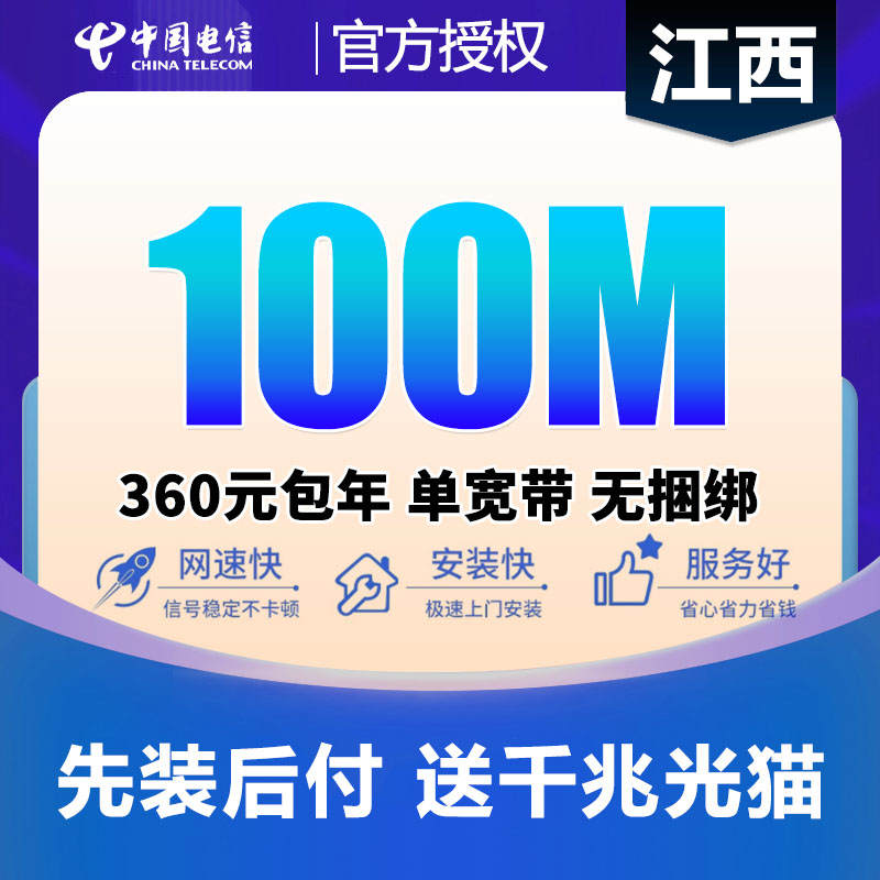 360元/100M宽带包年套餐(正品保障,官方统一售后,先装后付)