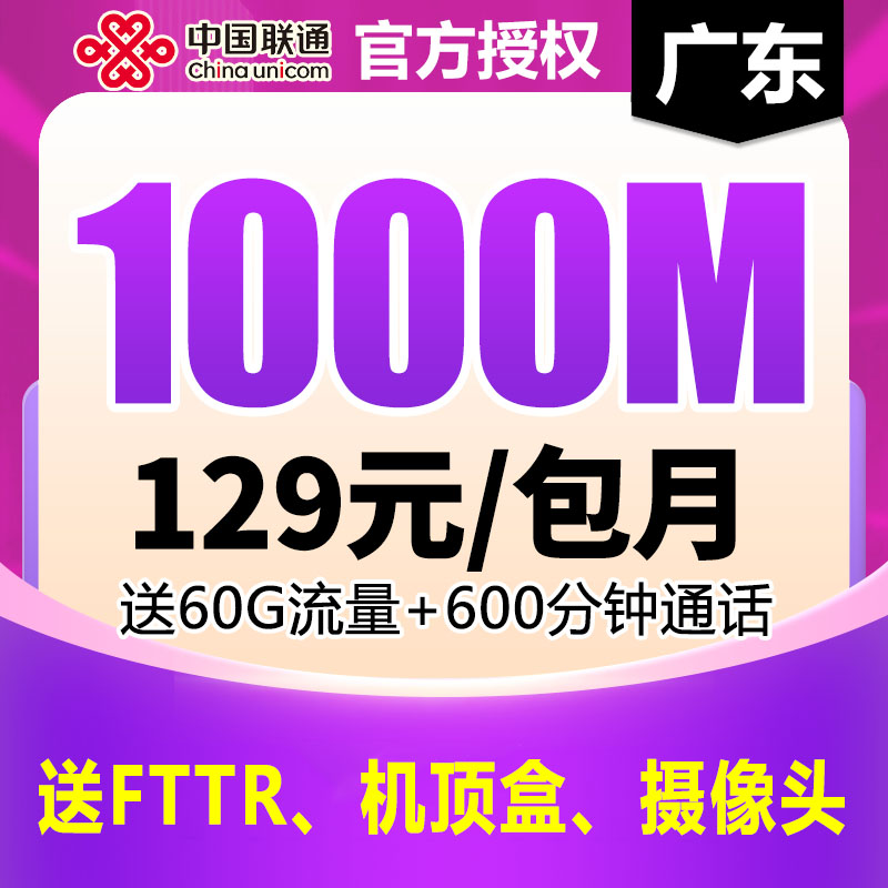 广东联通宽带1000M宽带129元/月FTTR版(送手机卡含每月60G流量+600分钟通话)