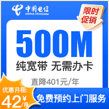 500M59元/月+50G全国流量+100分钟通话,独享光纤(先装后付,官方统一售后)