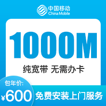 600元包年1000M单宽带,免安装费,不捆绑手机号码